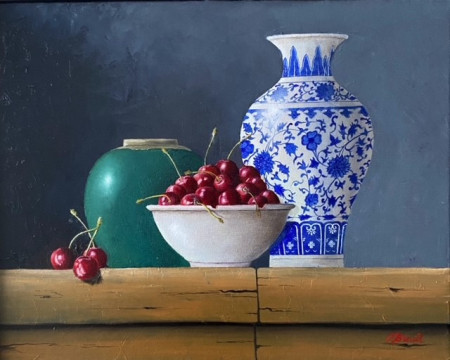 Chinese vaas, groen gemberpot en kom met kersen.jpeg